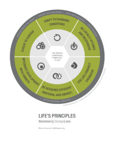 The Biomimicry DesignLens is a collection of diagrams that visually represent the foundations of our design approach. It includes the core components of this approach: Essential Elements, Life’s Principles, and Biomimicry Thinking (learn more about each component below).